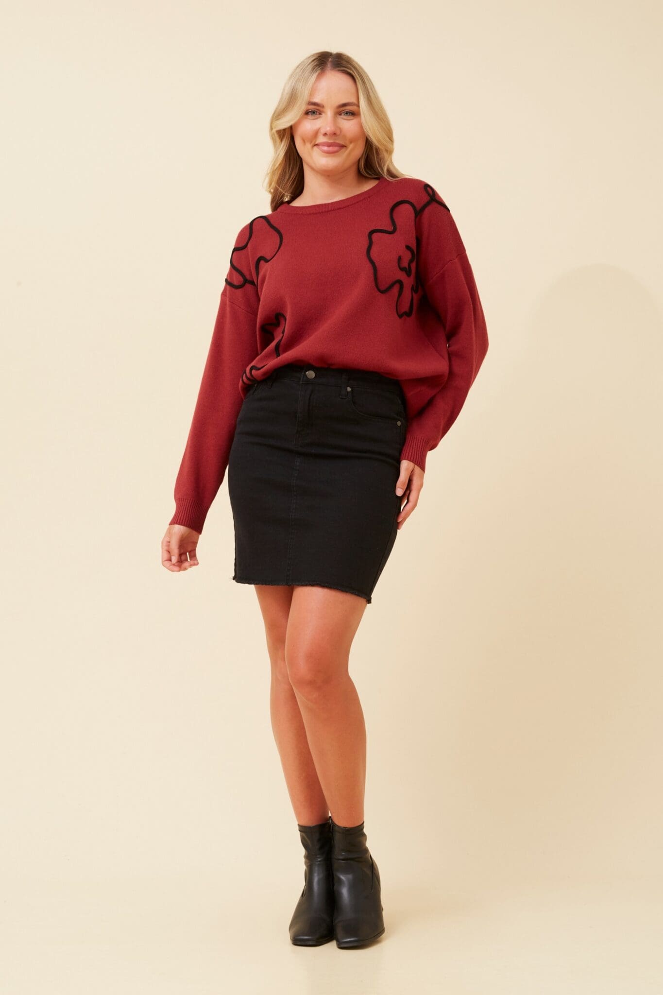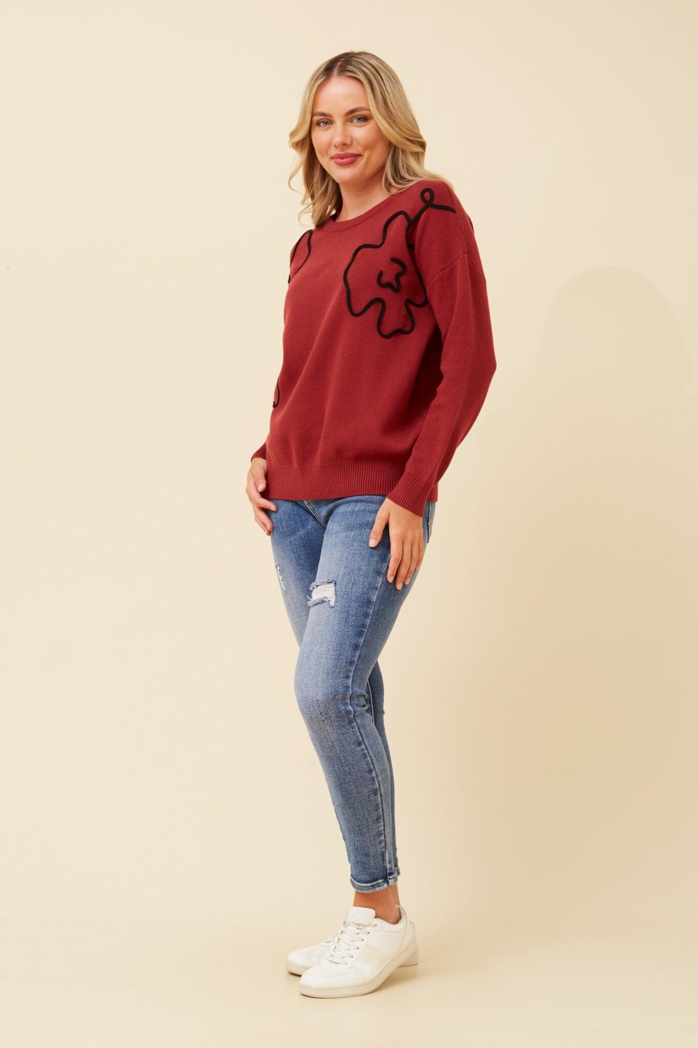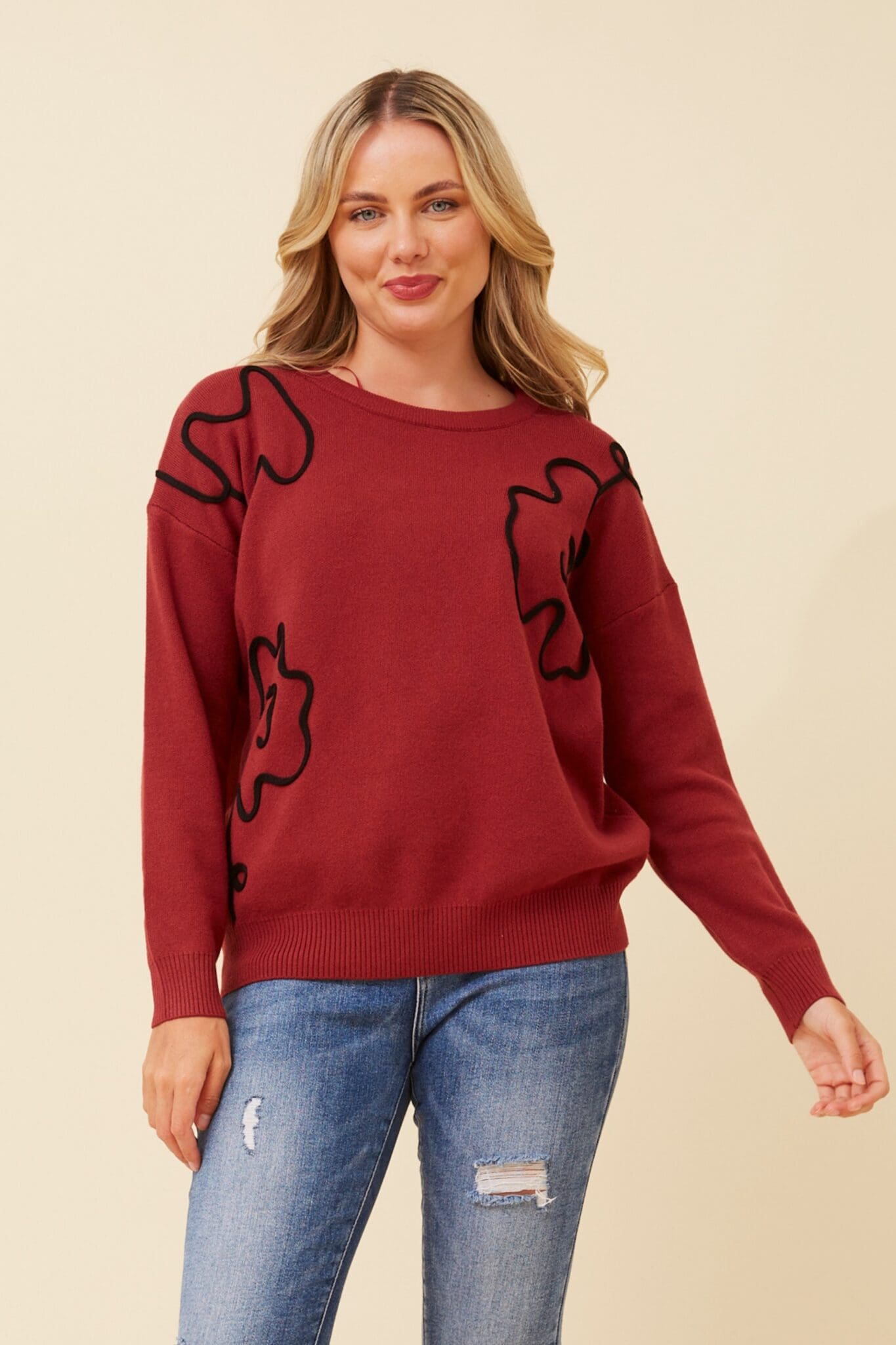A soft, pastel-toned lightweight knit with delicate rhinestone embellishments for a touch of sparkle.