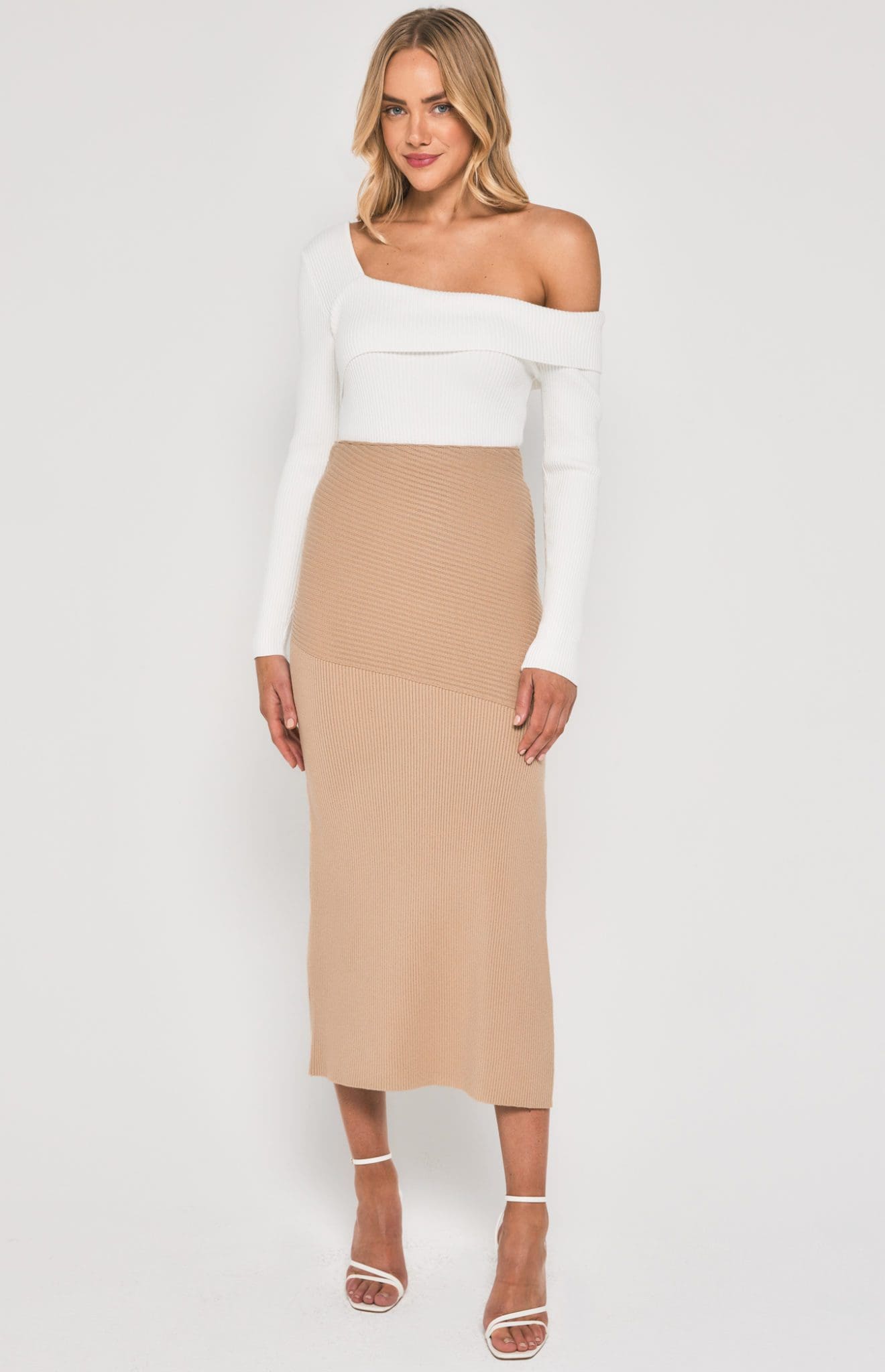 A season-essential! Our new Anastasia Skirt is ideal to have all year round! This beautiful knit skirt is stretchy and easy to pair with whatever you want! You could wear this with your favourite knit in winter, or a tank in summer for that ideal outfit!