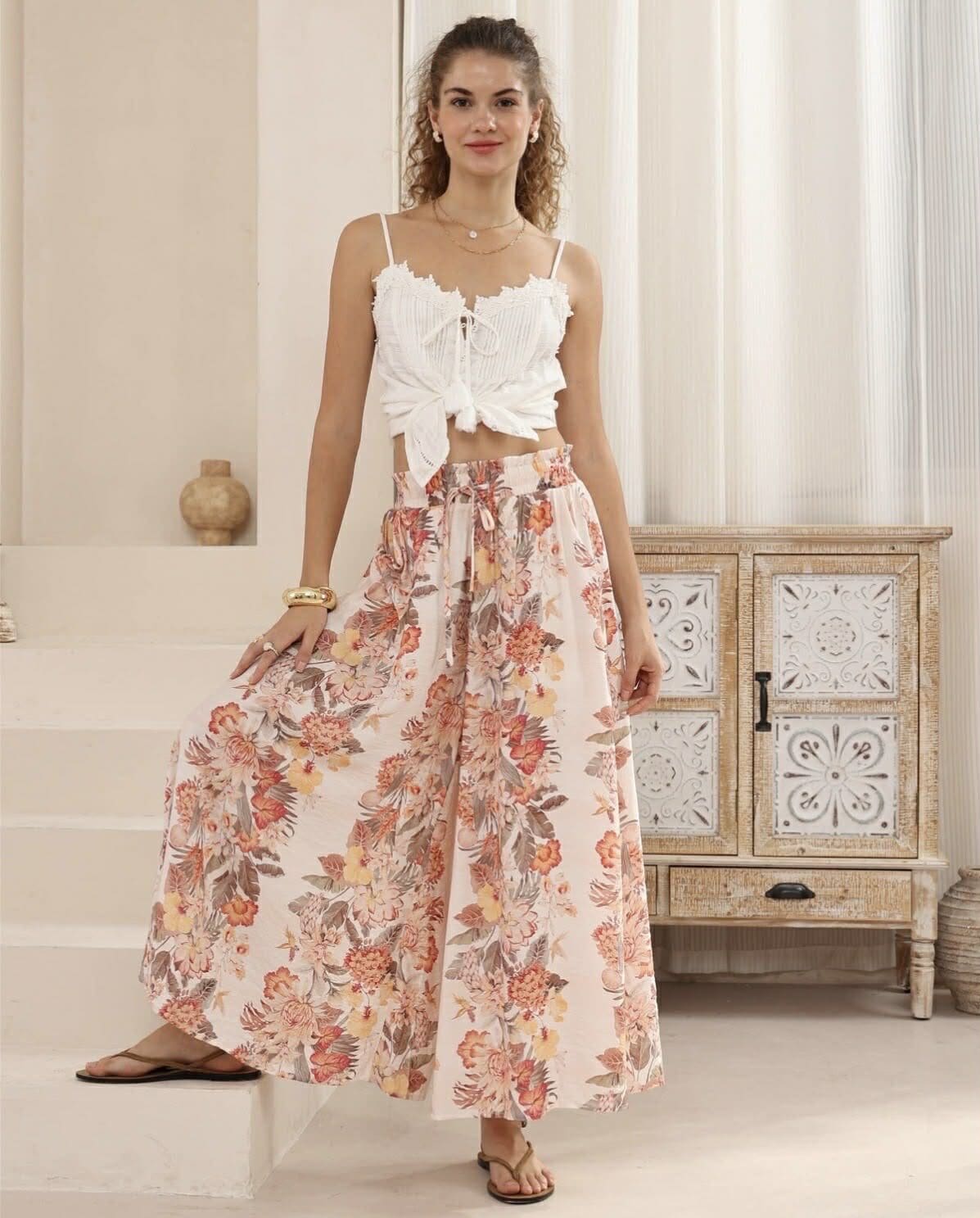The Autumn Florist Pants bring an airy, relaxed feel to any outfit. Designed with a floaty wide-leg cut and an elastic waistband, they offer an effortlessly chic look that moves with ease.
