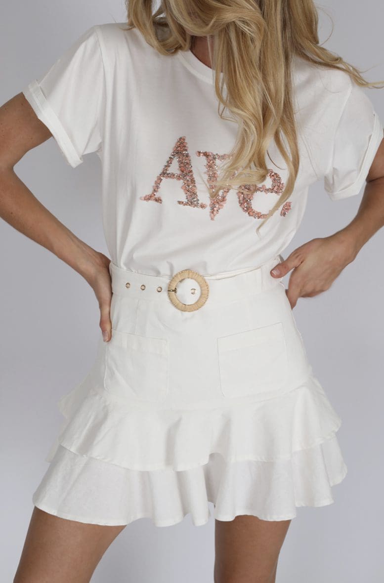 Our stunning new stunning rose gold rock encrusted tee will sure make a statement