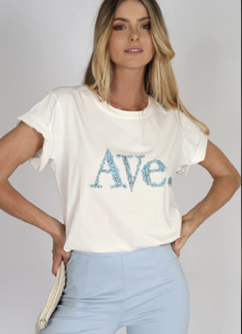 Our stunning new stunning blue rock encrusted tee will sure make a statement