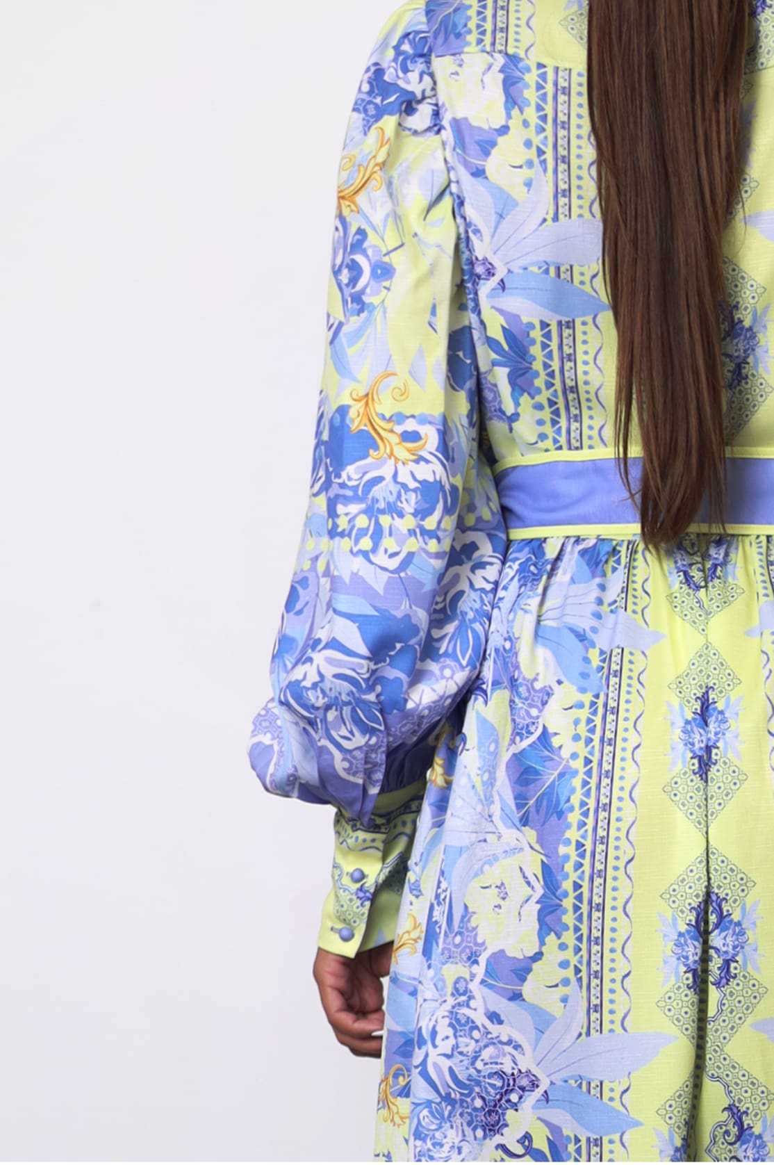 - Long cuffed balloon sleeves