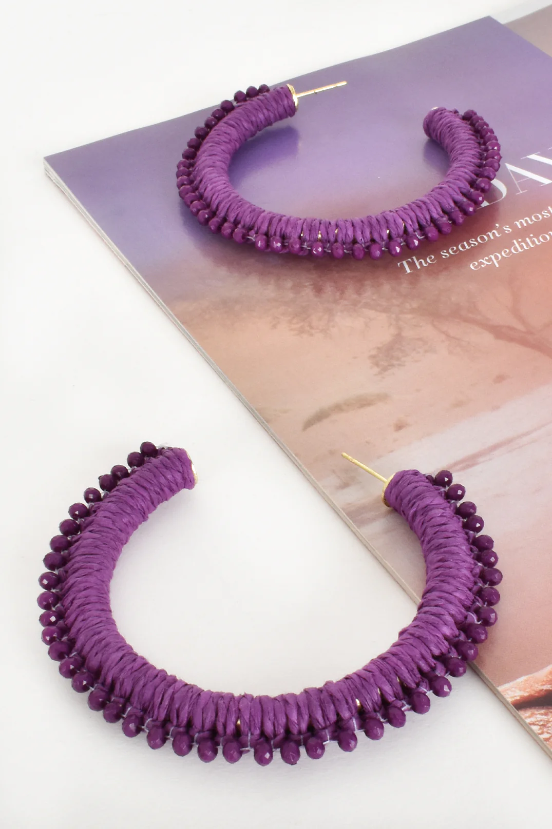 Bead Hoop Earrings – Purple