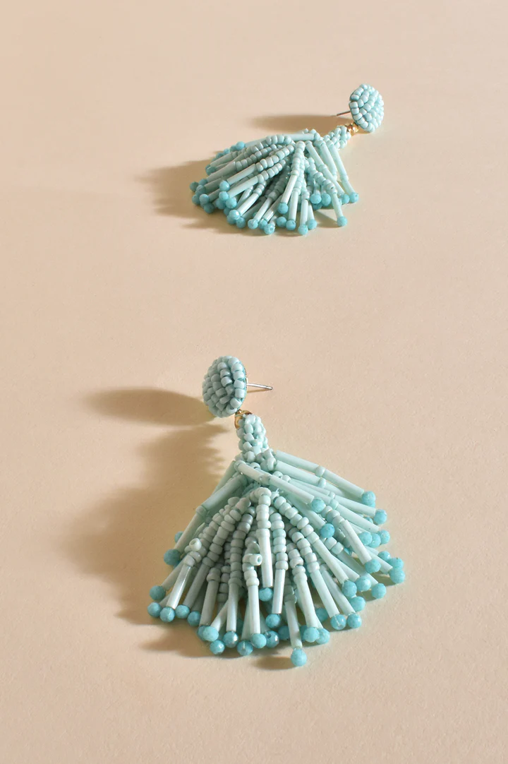 Beaded Tassel Earrings – Turquoise