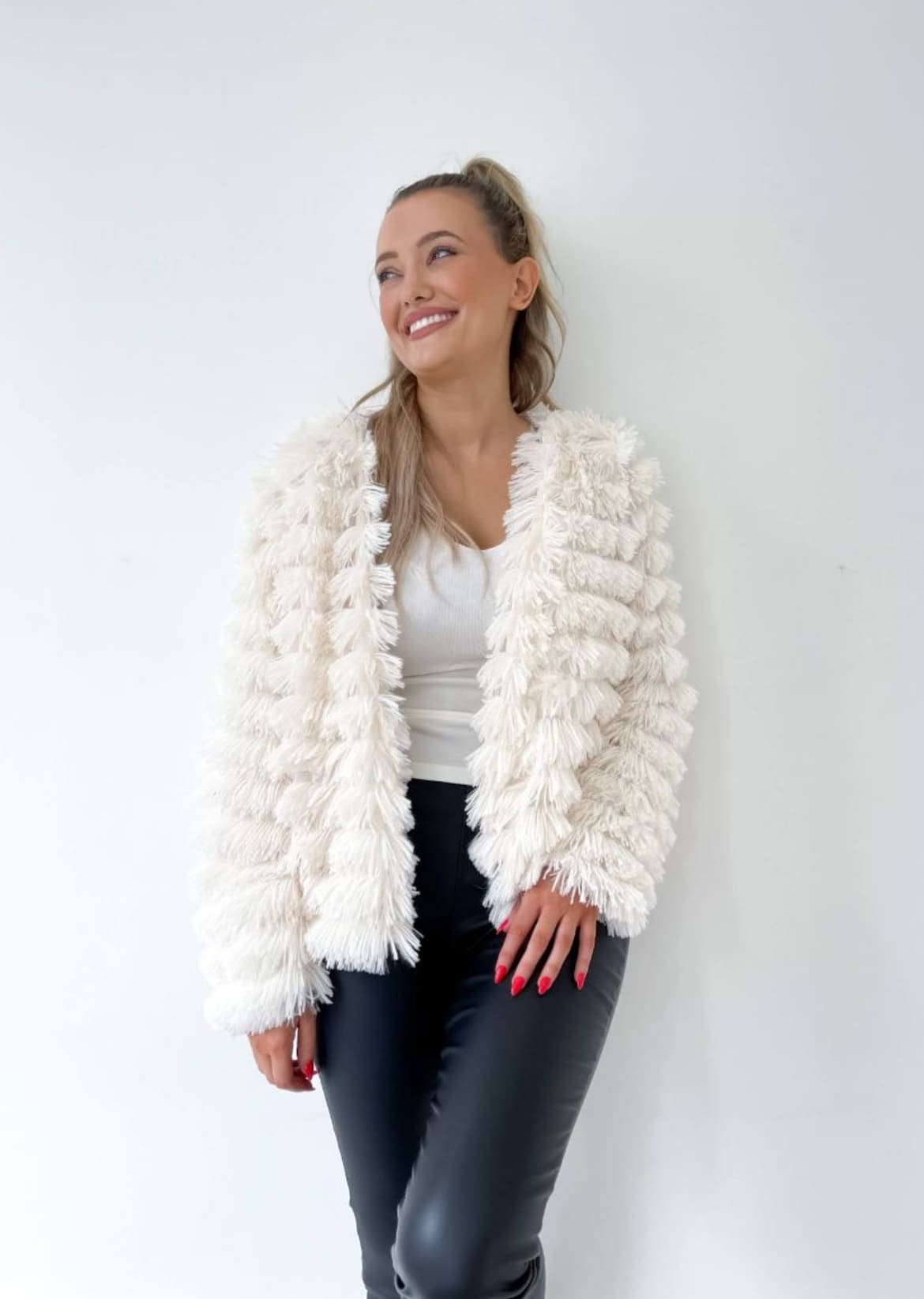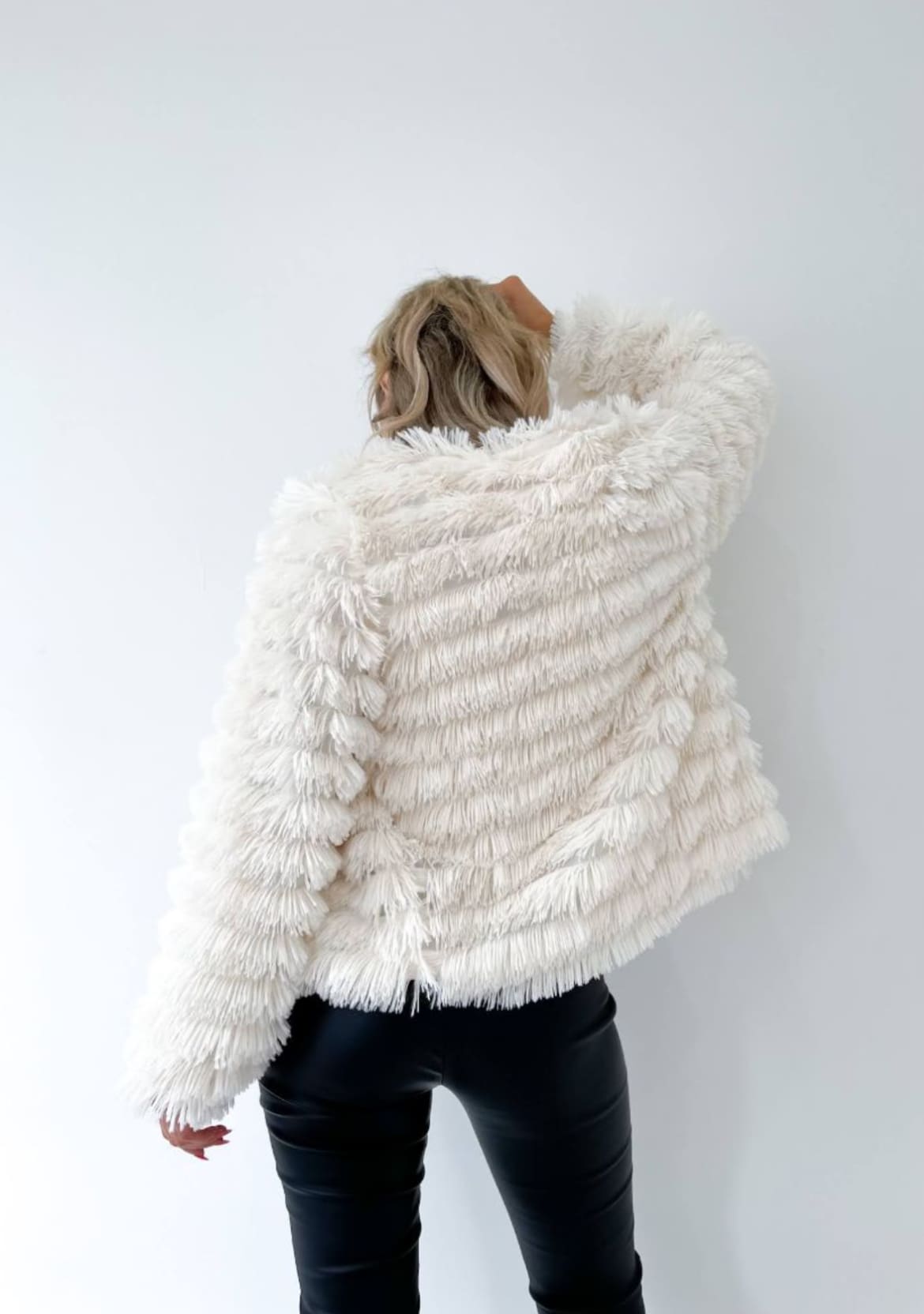 Our gorgeous brenna bird jacket is super soft and fluffy with a faux fur finish with no stretch. If you want to stand out be sure to pop it in your cart now. Team it up for a formal occasion or simply slip it over a tee with your favourite jeans.
