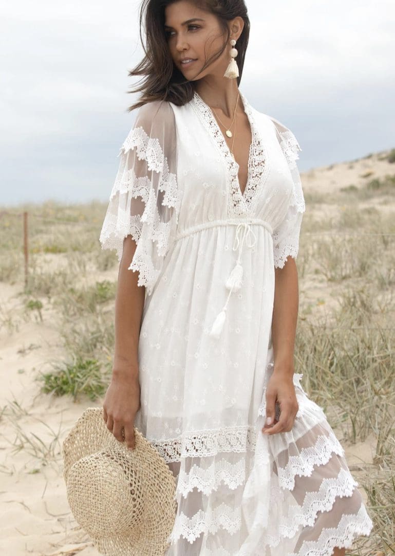 The Bungalow Maxi by Jaase would be the perfect white dress for a beach wedding, a photo shoot, baby shower, or simply for the gorgeous  summers day. Your definitely will stand out in this stunning Boho vintage inspired lace maxi.