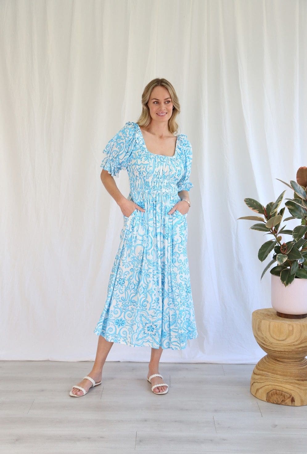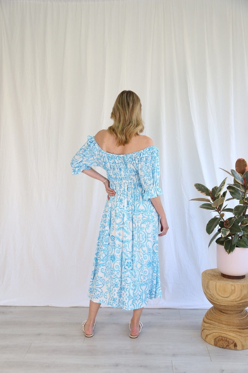 Turn heads in our Cassy Dress! 🌟💙 Effortless elegance in teal and white, designed to make you stand out