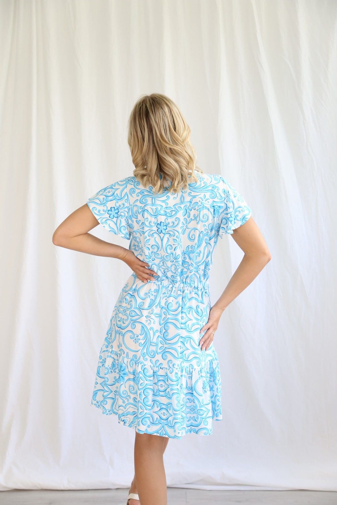 Turn heads in our Cassy Teal Dress! 🌟💙 Effortless elegance in teal and white, designed to make you stand out