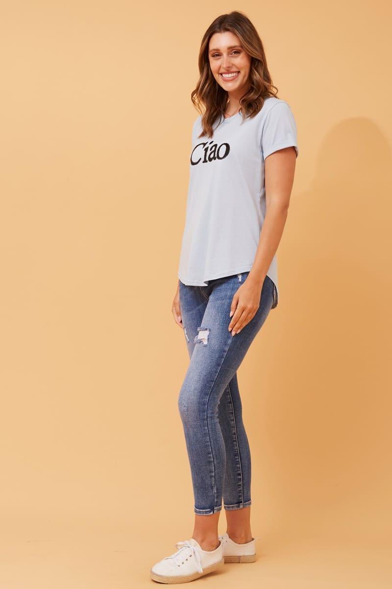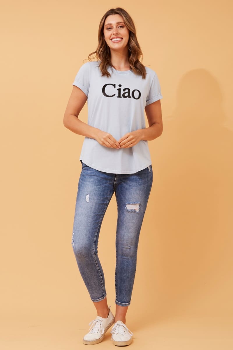 Ciao Embellished Tee – Baby Blue