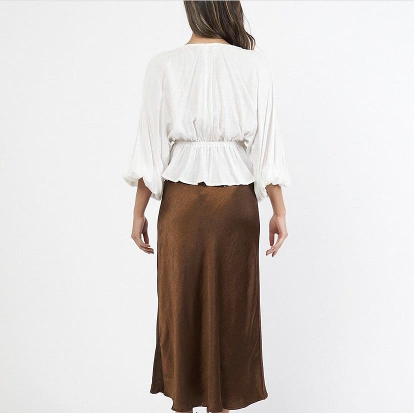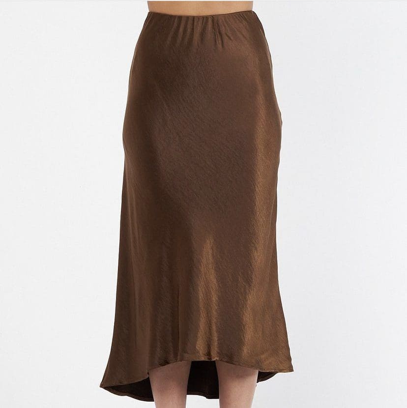 Take elegance to the next level with our Dani Skirt! Featuring a structured, elastic waistband, stretchy polyester fabric and a high-low bottom, this skirt is perfect to pair with your favourite white top and shoes. This rich chocolate colour will take your look to the next level, and can be worn with a wide-range of looks!