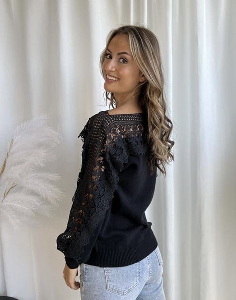Stay warm and cuddled up in our new Daphne Knit! Featuring a gorgeous lace pattern on the arms and neckline, this knit is ideal to keep you nice and warm, but allow for airflow so you don’t get toooo toasty!