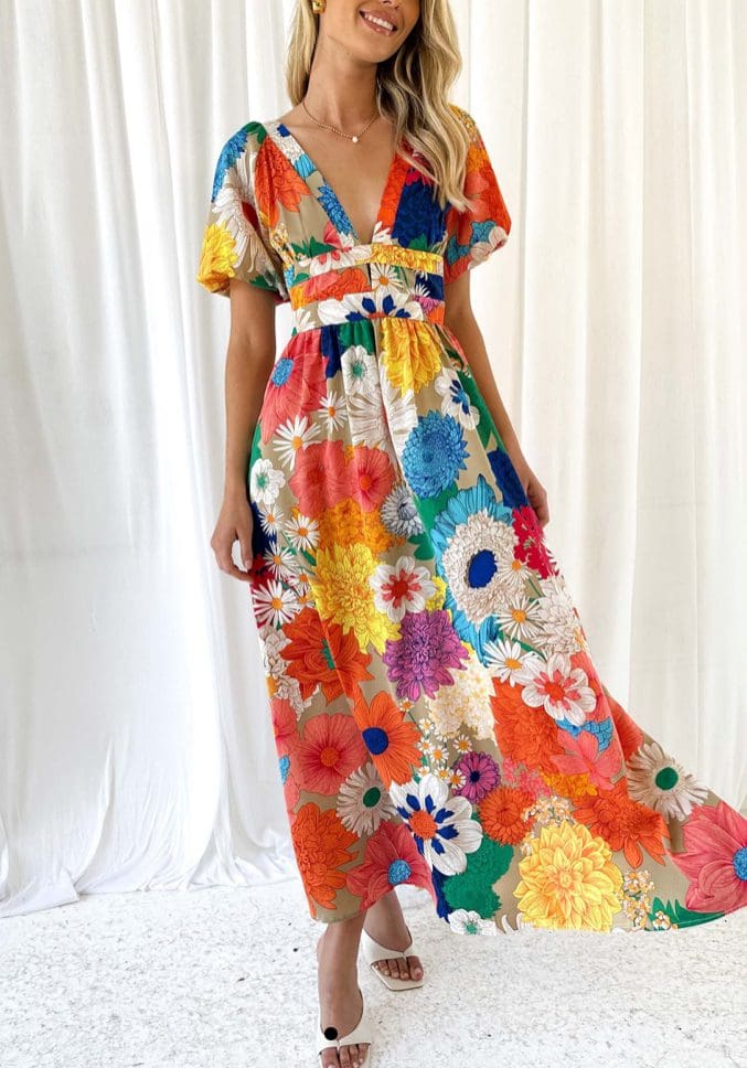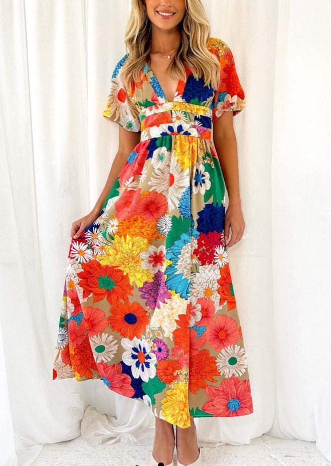 Flower power in full bloom with our Darci Dress! 🌸🌼🌺 This enchanting piece is a canvas of vibrant blooms, adding a burst of color to your day