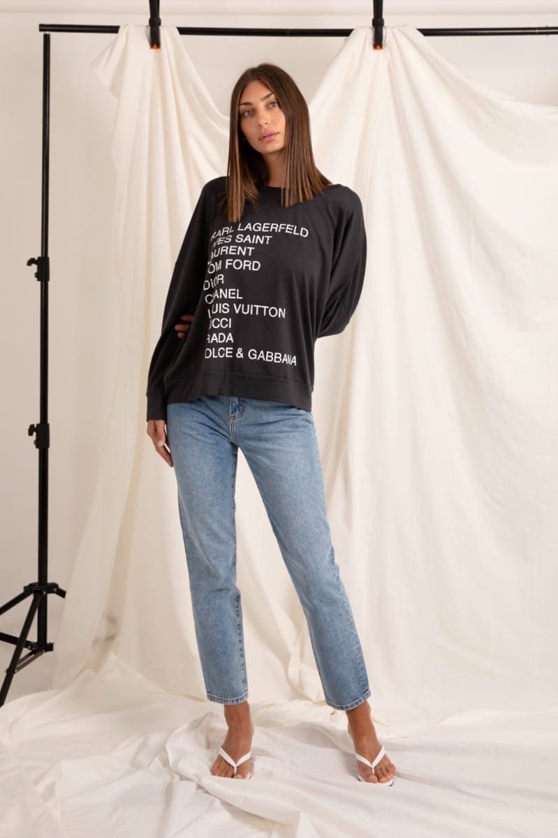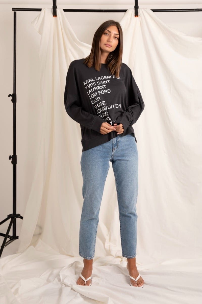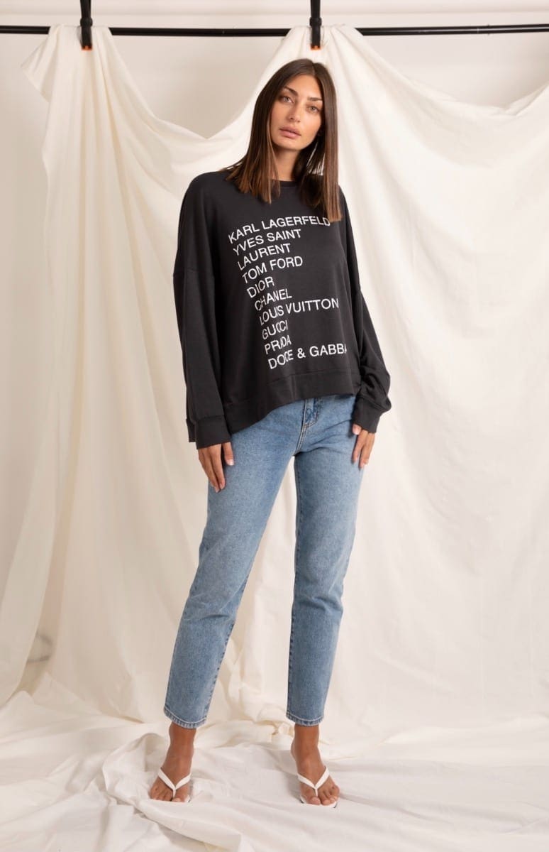 Looking for the perfect top to just throw on with anything? Here it is, the Designer Snob Sweater. This relaxed fit sweater has designer written all over it, with an affordable price tag. Featuring a rounded neckline, lightweight feel and relaxed fit, this sweater is perfect to put on with your favourite pair of jeans, or activewear.