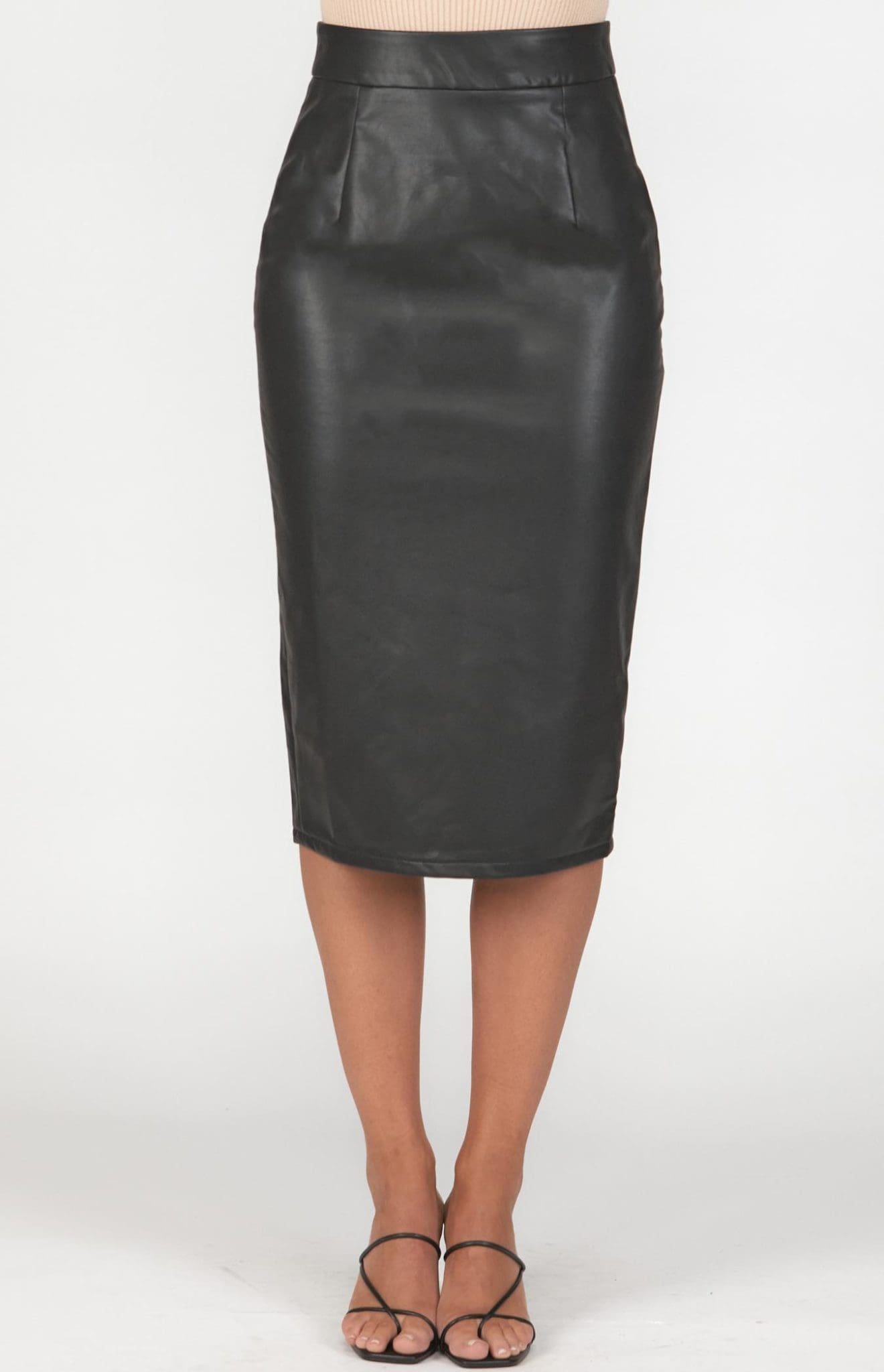 For an effortless outfit, look no further than our Faux Leather Skirts! These skirts show off your edgy style by adding that extra bold bit to your look! Featuring a leather front with lining inside, zip at back, and a slim fit!