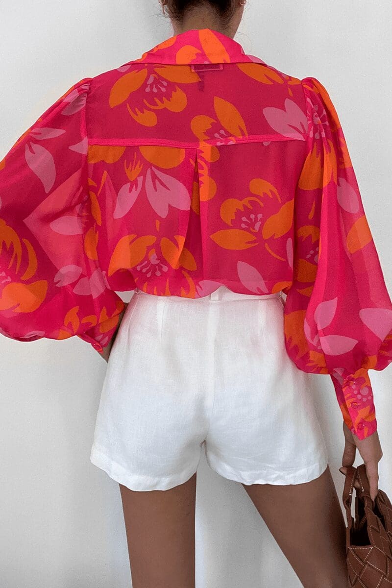 Our Fleetwood Blouse features a long sleeve with button cuff detail, centre-front buttons, and a collar. No lining and not stretch however a relaxed fit, chiffon lightweight fabric which is super soft.