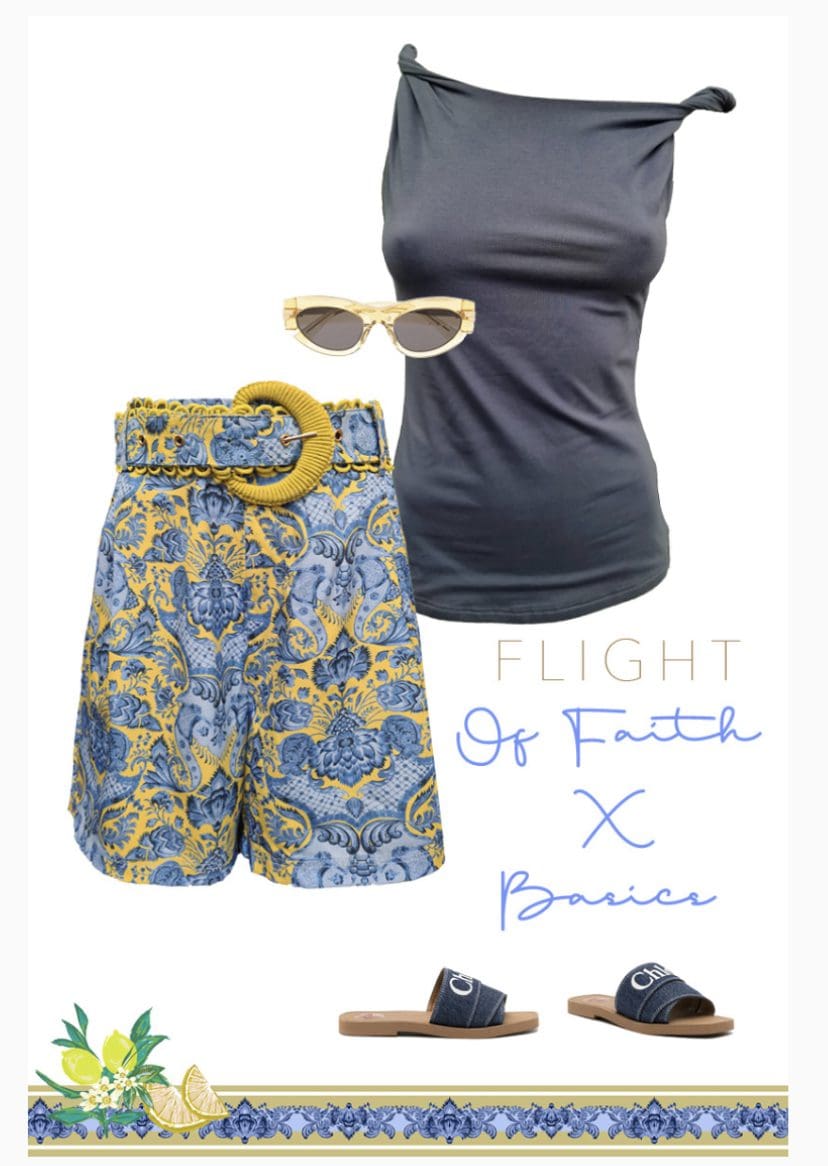 Dress like royalty in our new Flight of Faith Shorts. This gorgeous blue citrus short features shirring at the top, crochet boho belt scalloped, elastic waist, detail imitation pockets at rear and highlights of cornflower blue with accents of navy blue.