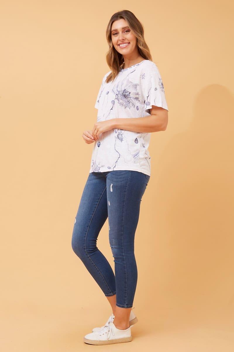 Flip Floral Top – White