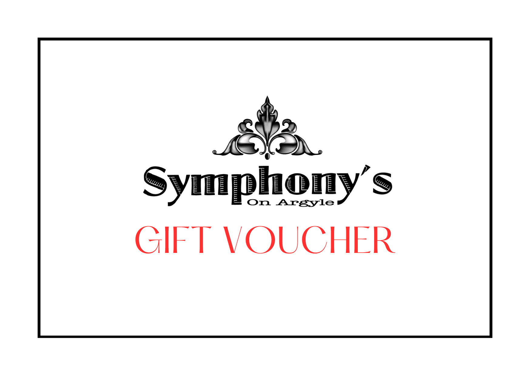 The easiest gift you’ll ever get someone! Spoil someone special with a Symphony’s on Argyle Gift Voucher! Choose from the set amounts and from the different types of cards – you can spoil anyone for any occasion!