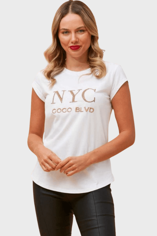 Not so basic basics! Keep cool and comfortable this season in this ‘NYC COCO BLVD’ graphic tee. One of our bestselling pieces every season! Style with jeans, shorts or skirts for a relaxed and effortless look!