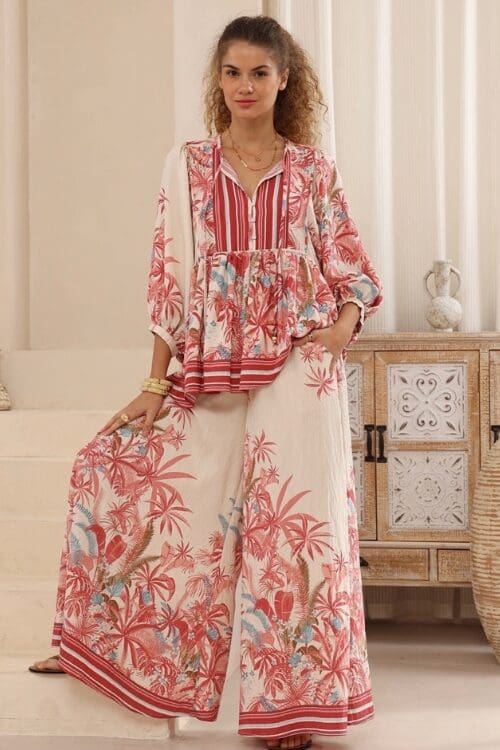 The Watercolour Paradise Pants are made for easy elegance and everyday comfort. With a floaty wide-leg silhouette and a soft elastic waistband, they move beautifully with every step. Their light, breezy design makes them the perfect go-to for warm days, long lunches, or relaxed weekends.