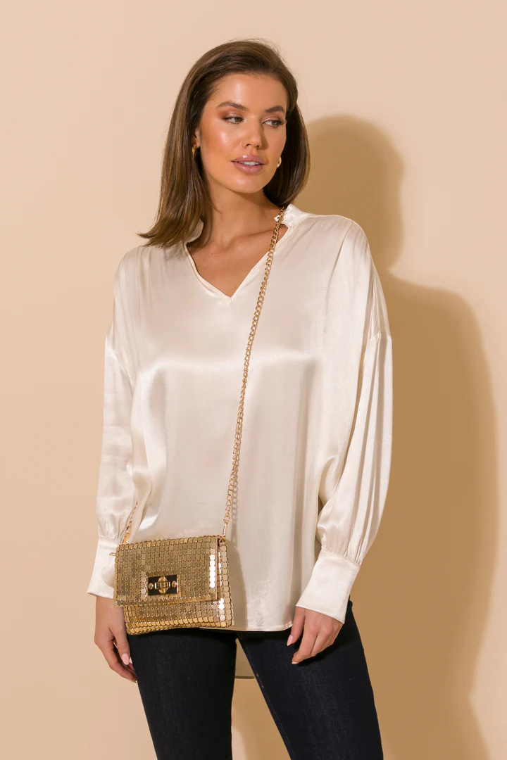 Eternally stylish, this nostalgic chain mesh bag with a chunky toggle closure will always add a chic touch to any look! It has a removable shoulder chain so you can use it as a clutch or over the shoulder but don’t let this little gem hang around waiting for your next event…our favourite way to wear it cross body with denim or linen to create a casual luxe weekend look!