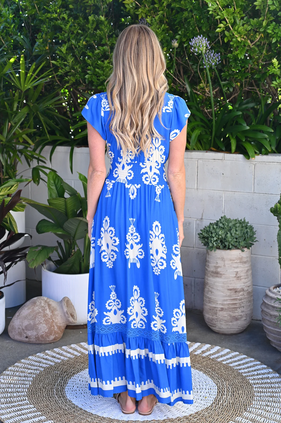 Embrace the Boho trend with this all-over floral print maxi dress. Designed to be fitted in the bodice and flare out at hem. Team with flat sandals for an on-trend festival look.