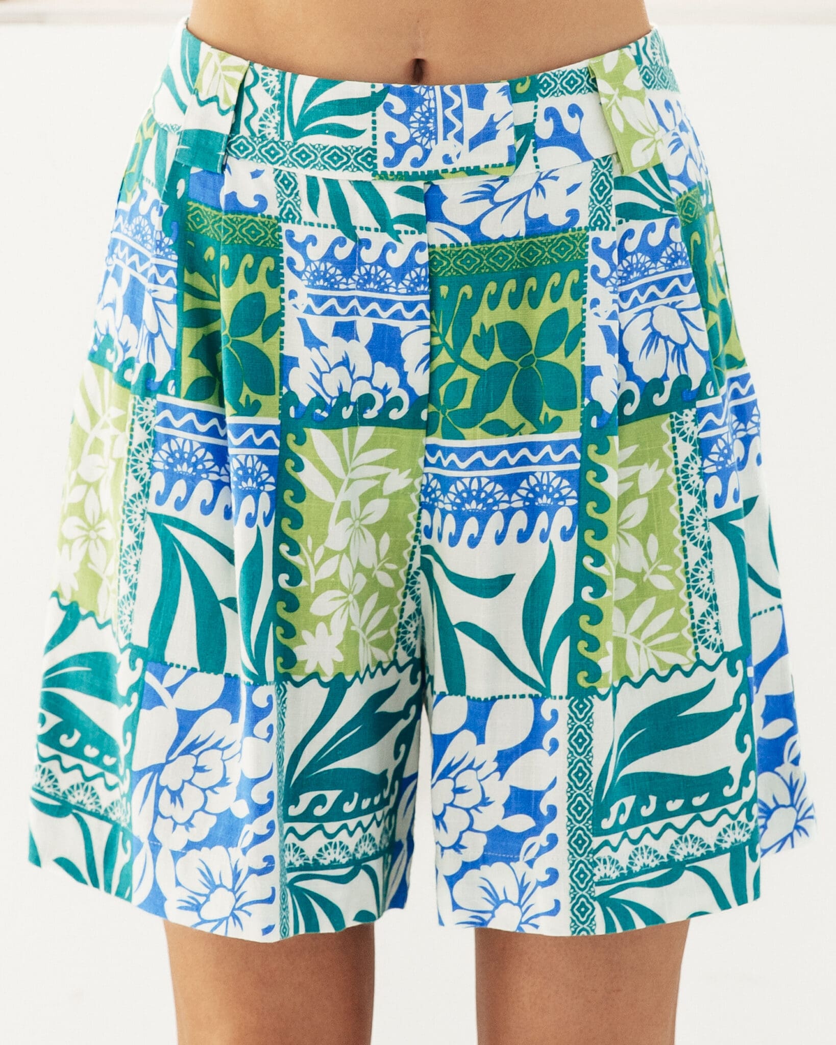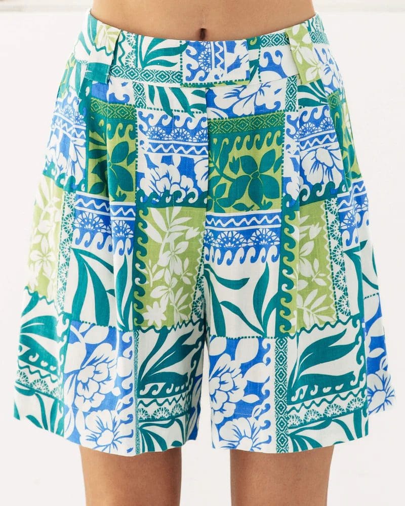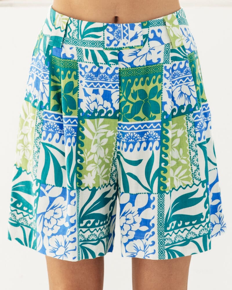 Exclusive print ∙ Side pockets ∙ Belt loop ∙ Fly front with button closure ∙ Our model is wearing size 8