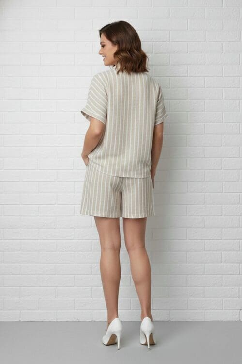 • Top: Button-up front with a classic collar and short sleeves.