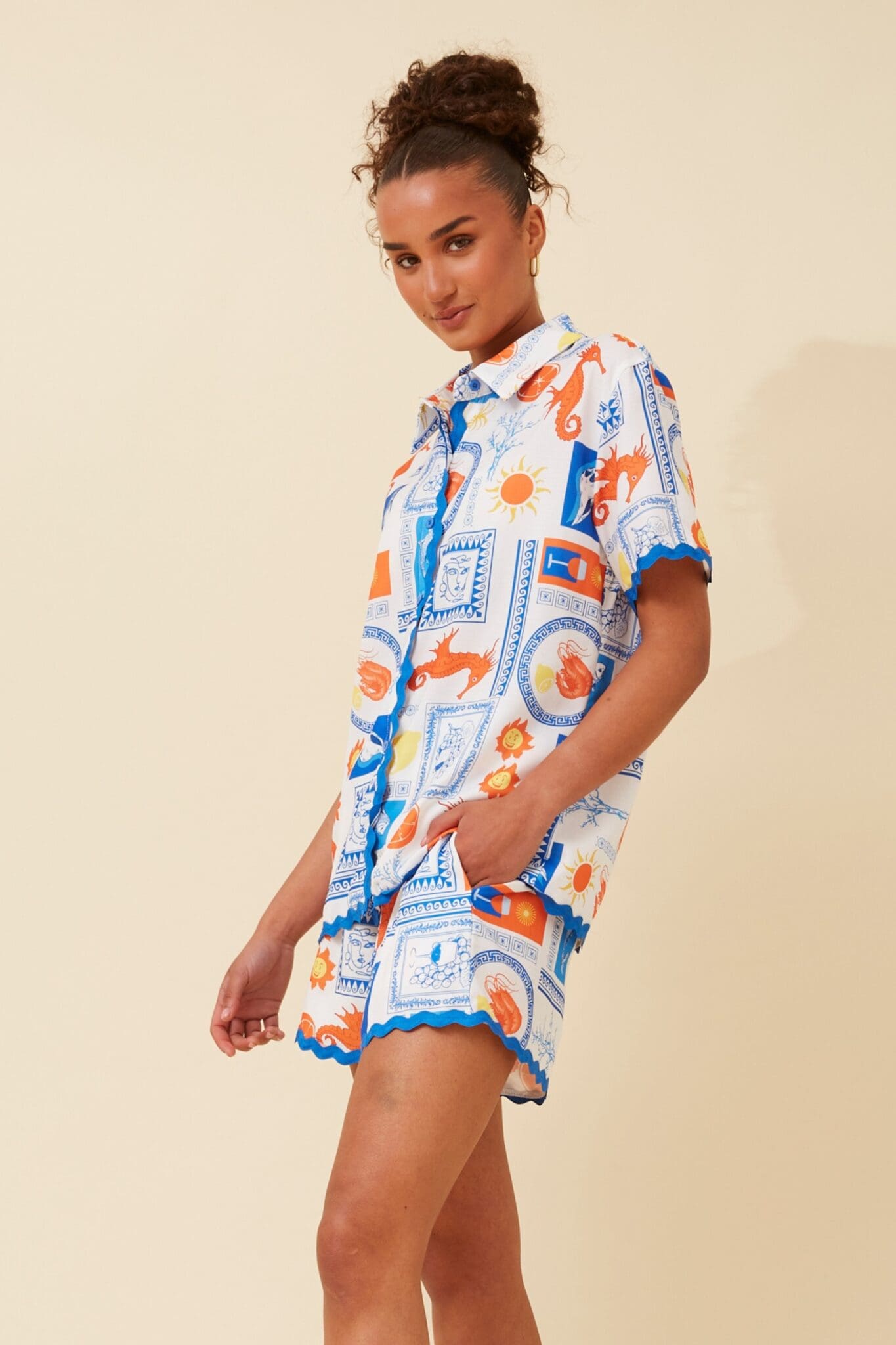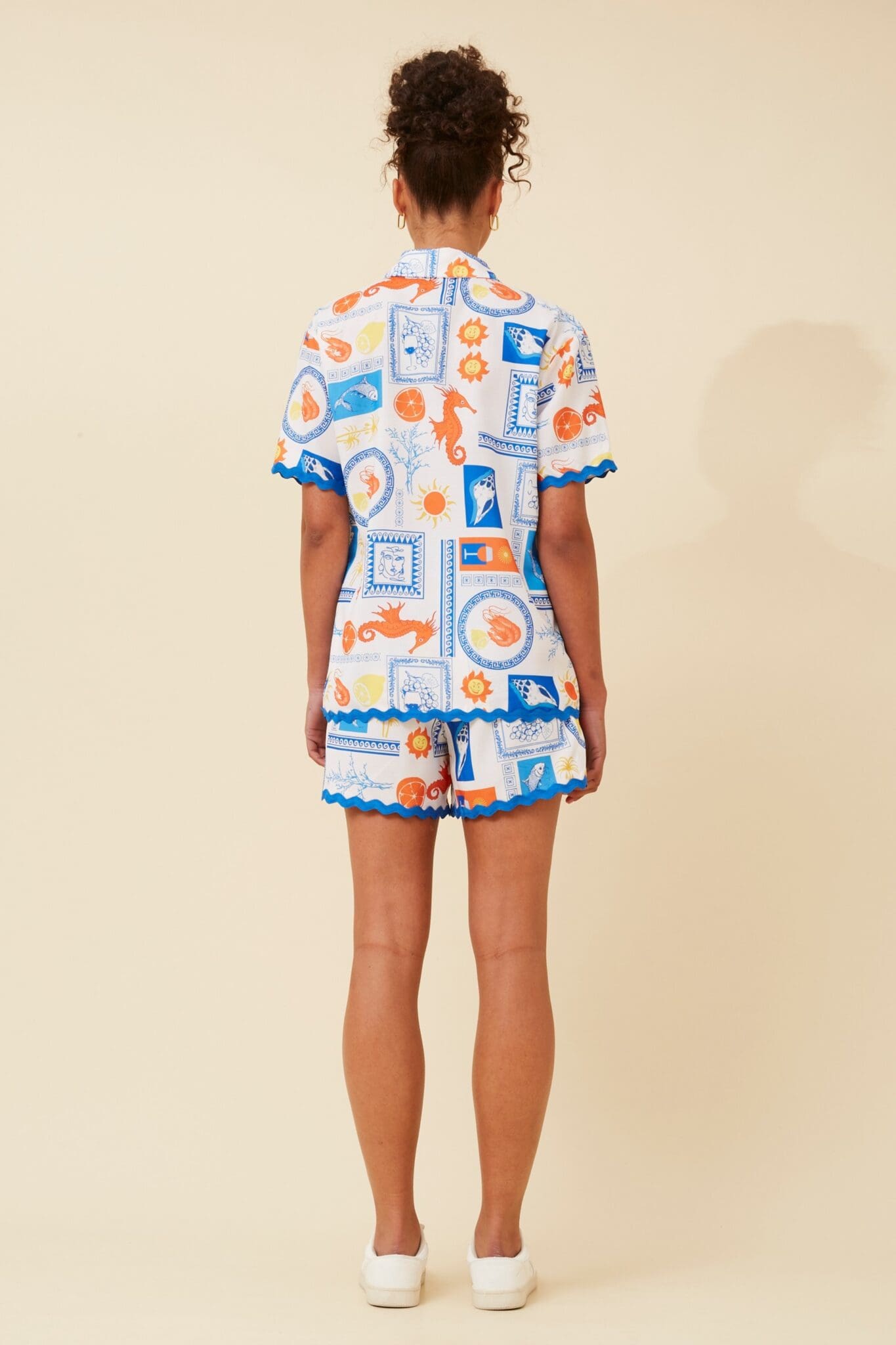 Enhance your holiday style with our Seahorse Scallop summer set. Combine it with sandals and sunglasses for a carefree, memorable vacation look.
