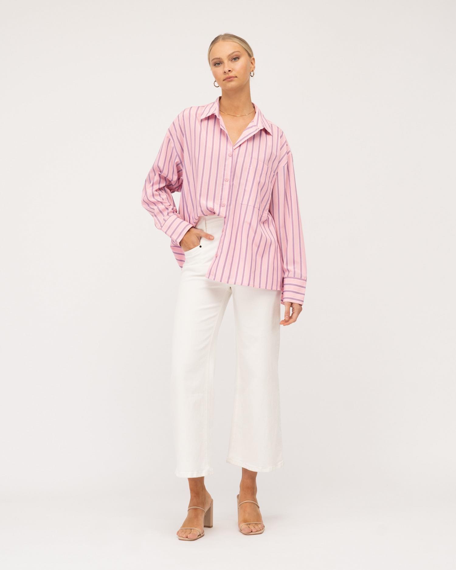 Feel a combination of free and sophistication in our Soft Rose Shirt. Stripes Stripes and more Stripes! You’ll just love how easy this top is to wear and pair back with your fave jeans or pants!