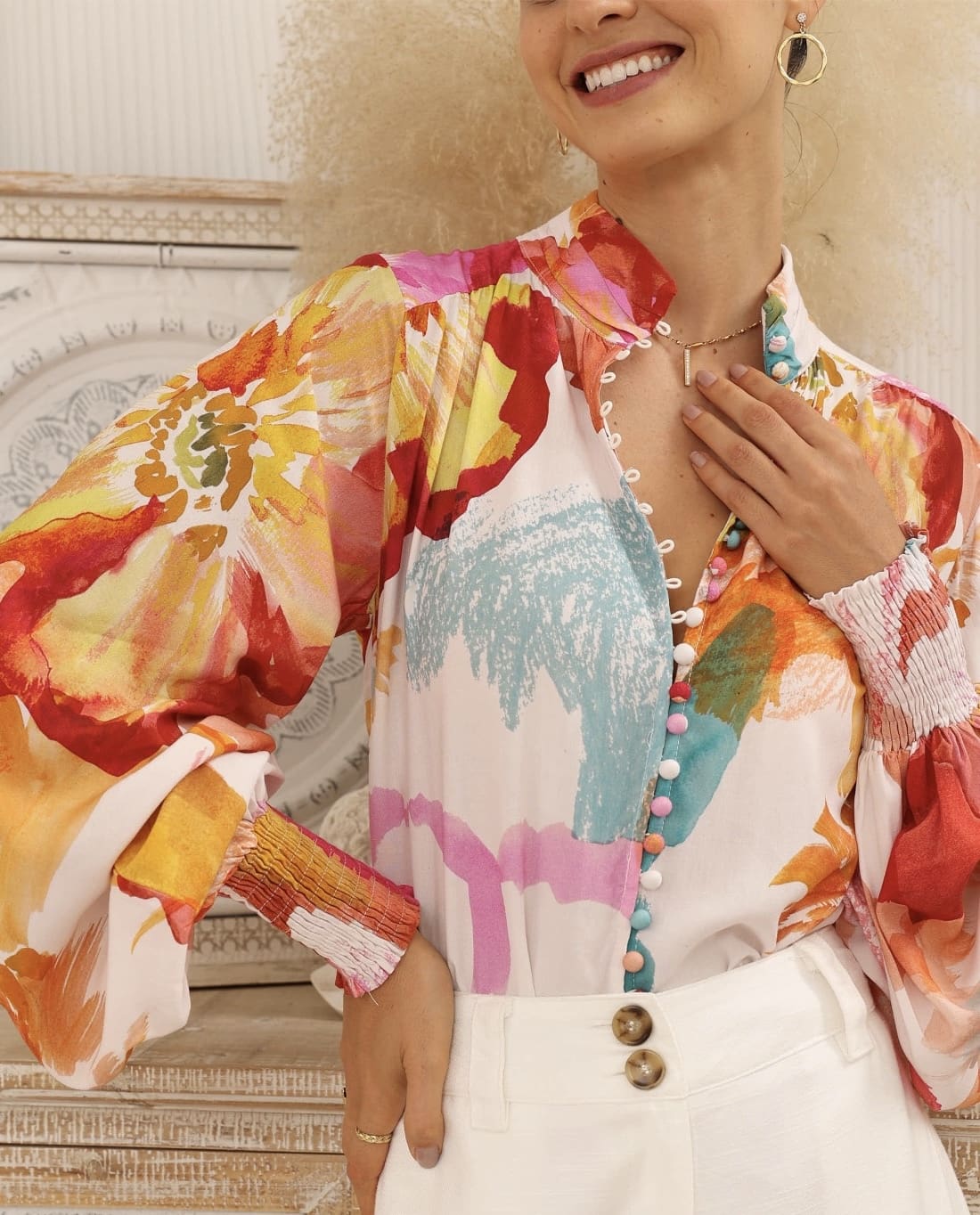 Sheer sophistication and elegance in this Stella Blouse. This gorgeous blouse is ideal to wear to a party, dinner or luncheon!