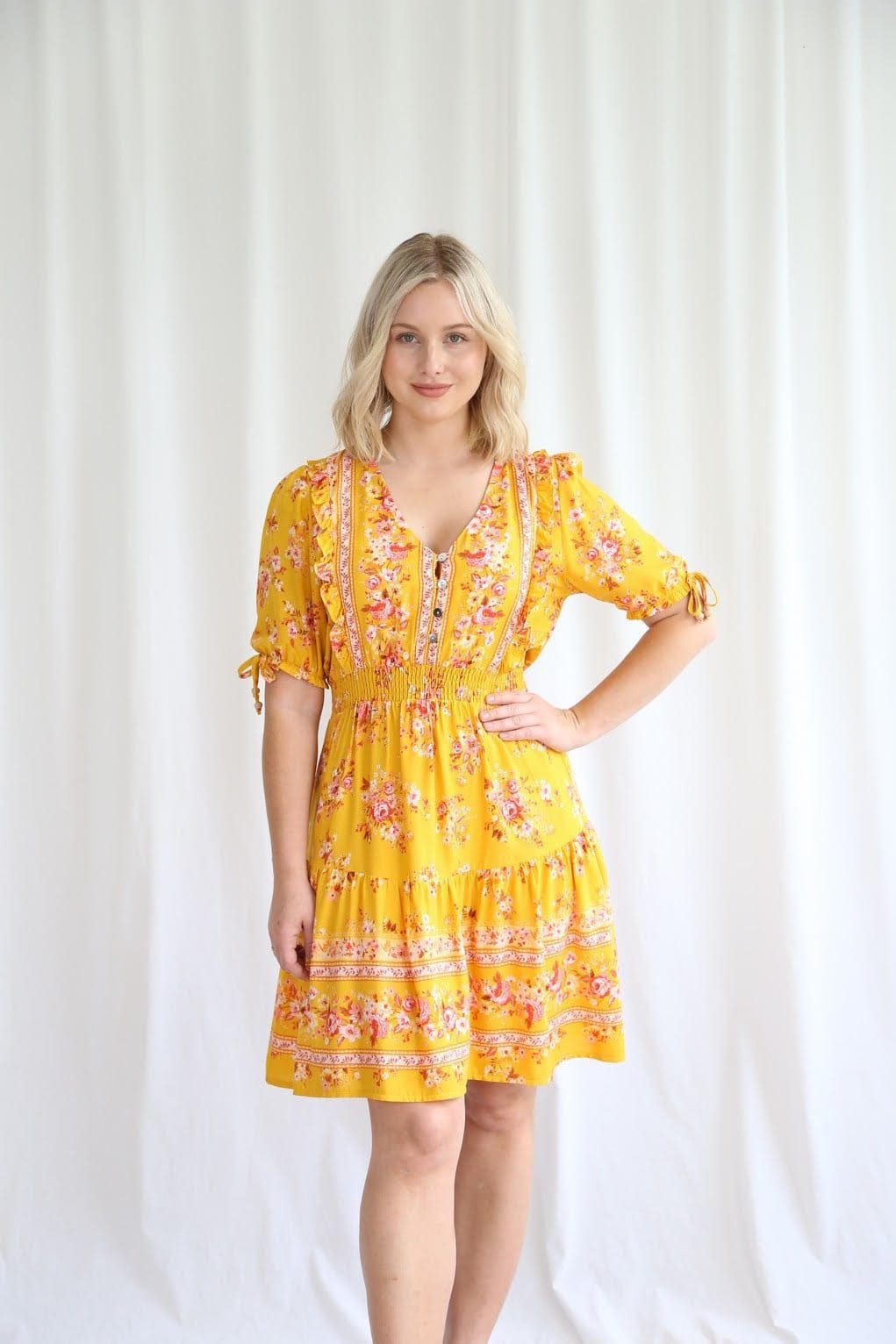 Start off the new year bright and bubbly in our new Sunny Floral Mini! This fresh print can be worn all year round – whether you’re blending in to the colours of summer or bringing a pop of colour into the winter season.