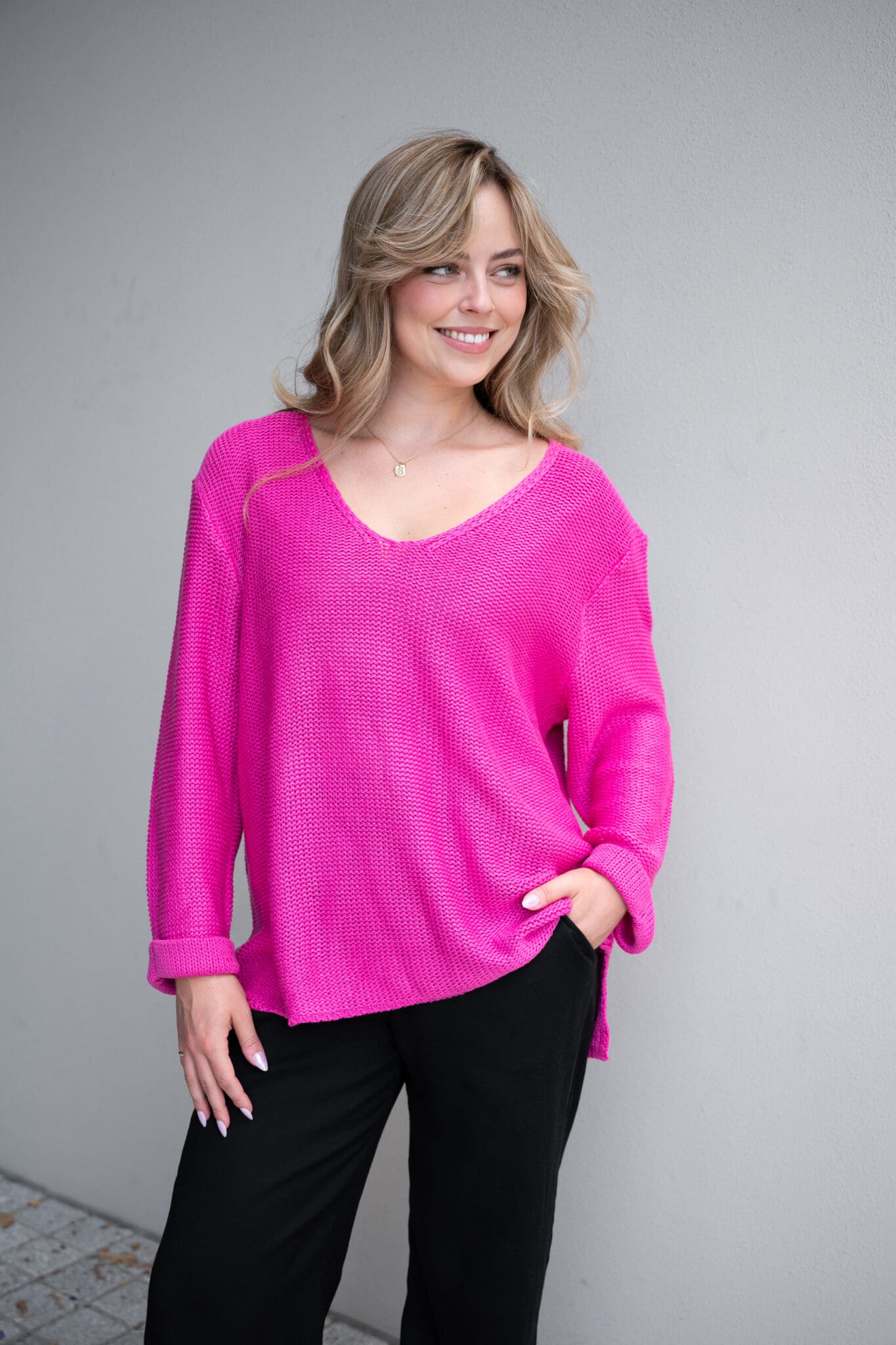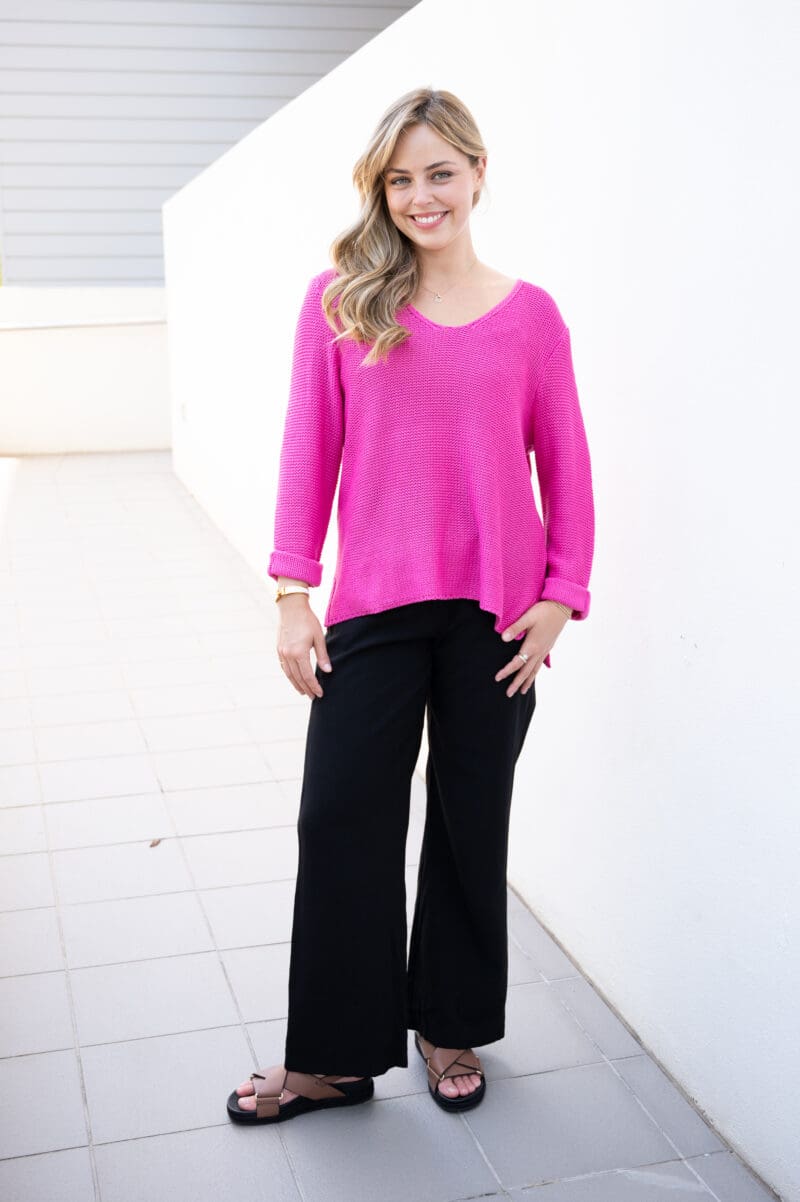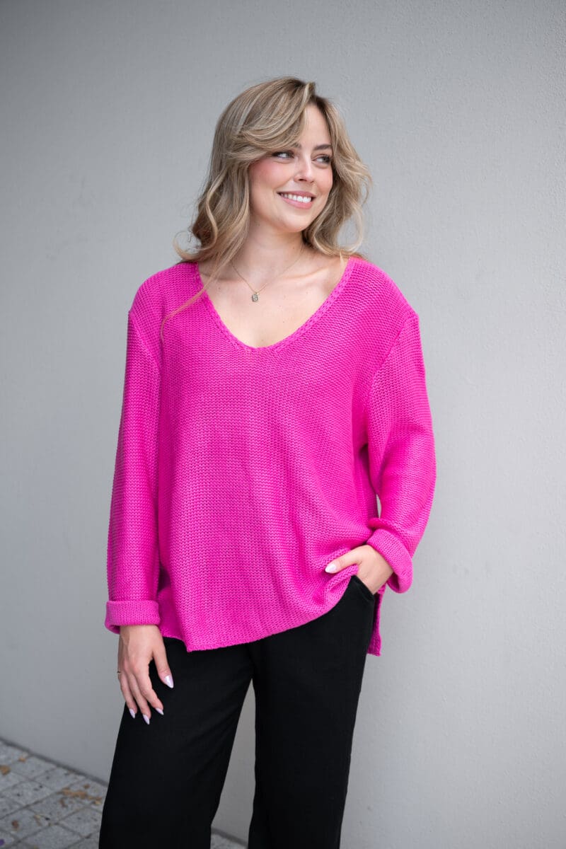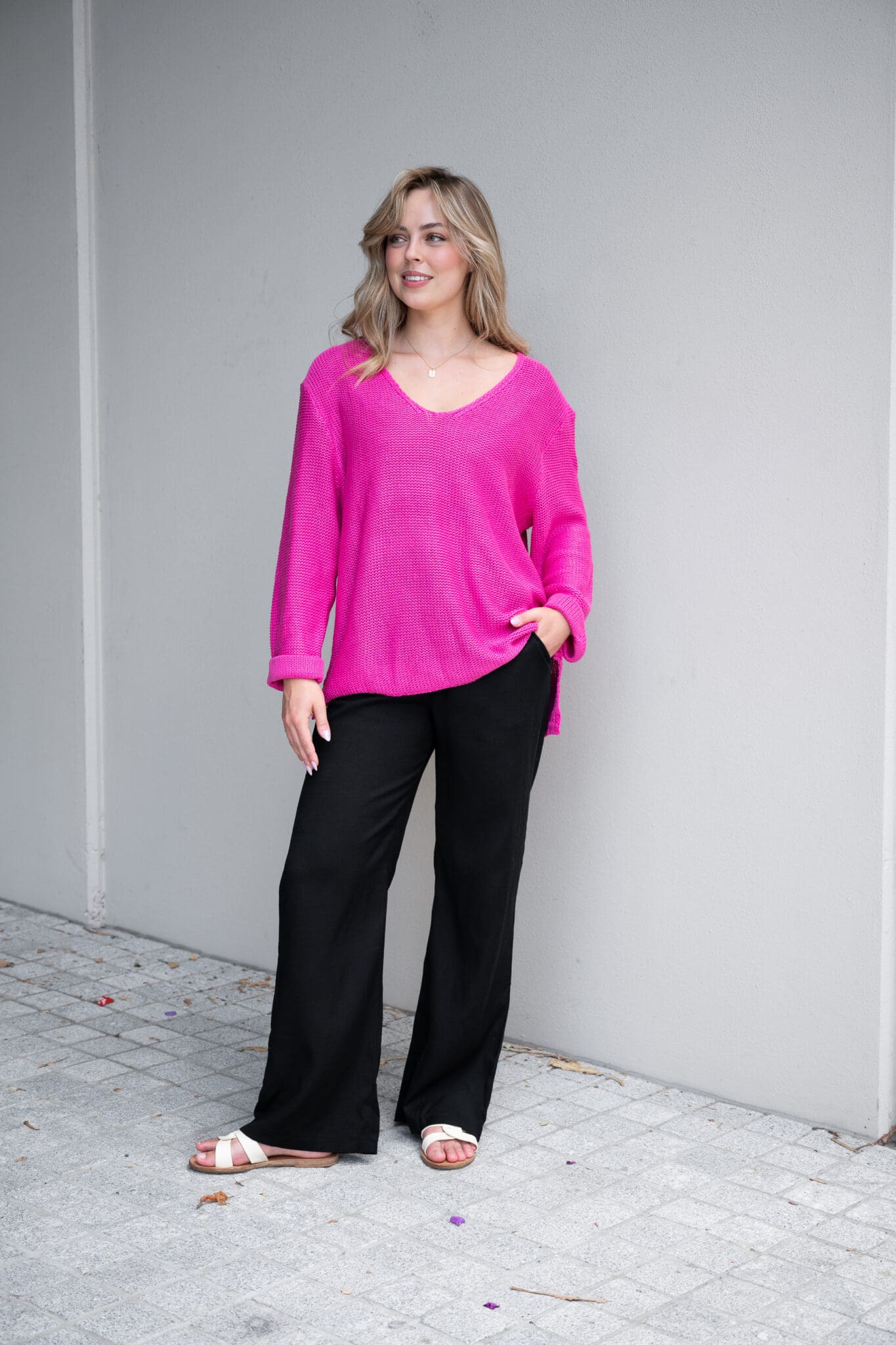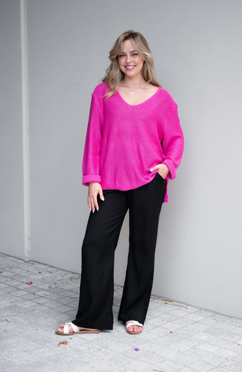 Introducing the Valerie V Neck Knit – your new wardrobe staple for effortless chic! 💫 With its relaxed fit, V-neckline, and stylish drop shoulder, this classic knit offers both comfort and style in one. Crafted with a blend of cotton, polyester, and spandex, it’s perfect for all-day wear. Elevate your look with side splits that add a touch of flair