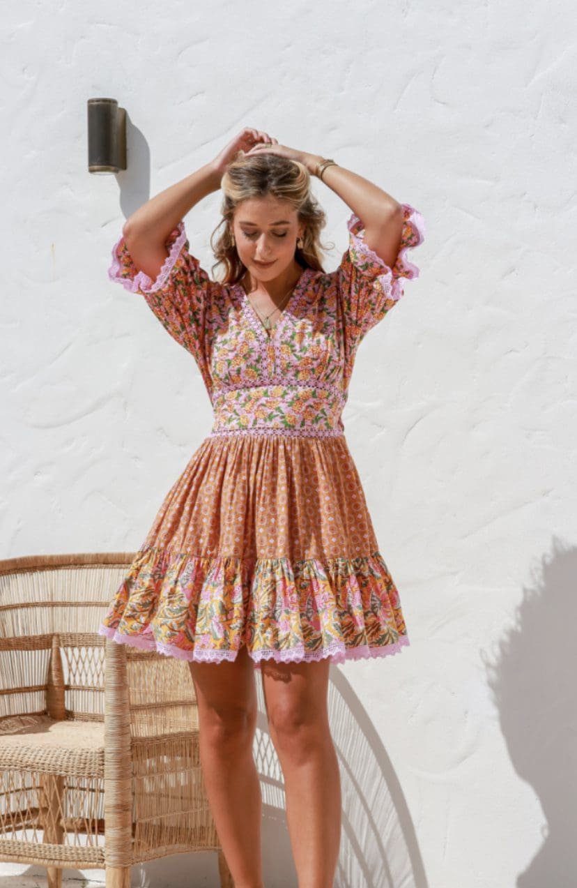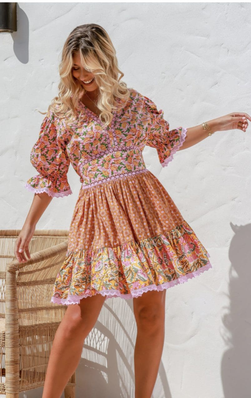 Flirty and Romantic in our new Vanessa Mini Dress. This gorgeous dress features a stunning lace trim, beautiful colour combinations, a v-neckline and short sleeves. You’ll fall madly in love with this one!