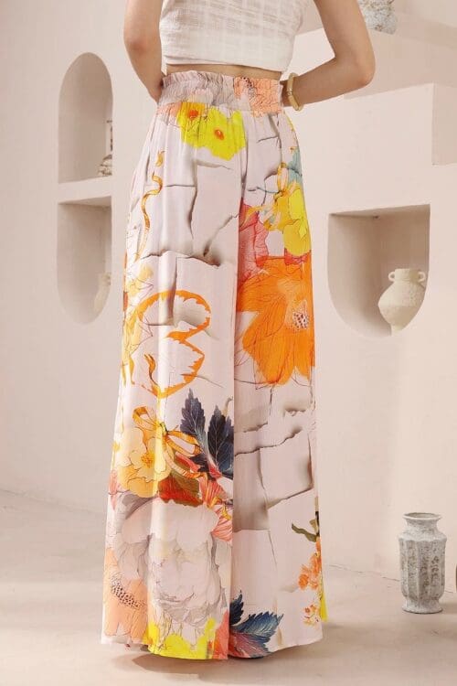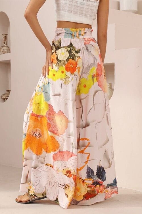 The Watercolour Paradise Pants are made for easy elegance and everyday comfort. With a floaty wide-leg silhouette and a soft elastic waistband, they move beautifully with every step. Their light, breezy design makes them the perfect go-to for warm days, long lunches, or relaxed weekends.
