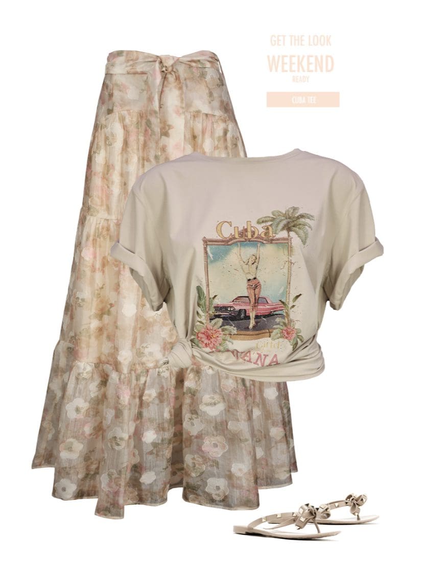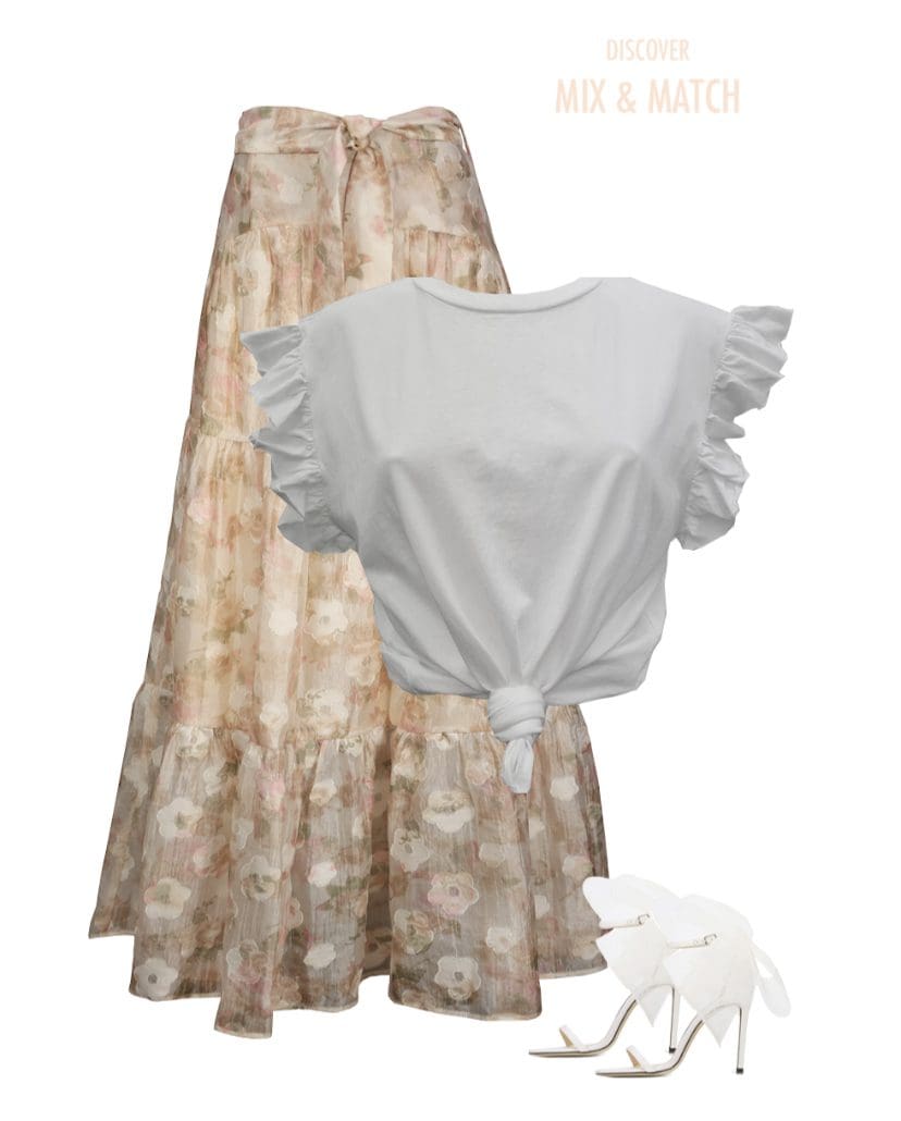 Walk along the streets feeling like royalty when you wear our new White Blossom Range! This new full length maxi skirt is fully lined, and features a self-fabric tie, fitted waist, gathered tiers and invisible back zipper.